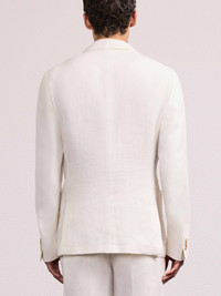 Paulo linen blazer is the epitome of relaxed tailoring. Imagined by our Head of Design, trained on Savile Row, a soft shoulder and unstructured inner make the blazer both comfortable and versatile. Pair with matching Affonso tailored trousers for a relaxed lightweight suit. Product Details COMPOSITION: 100% linen Lining: 100% viscose CARE: Do not wash, dry clean only DETAILS: Two buttons Single breasted Half canvas Notch lapel with working lapel buttonhole Butterfly lining 2 internal jet pockets with button closure 2 external patch pockets 1 external breast pocket Three button cuff detail MODEL MEASUREMENTS SKU 2658-593 Model wears size M Model measures: Height: 6"1, Waist 31", Chest 39.5''
