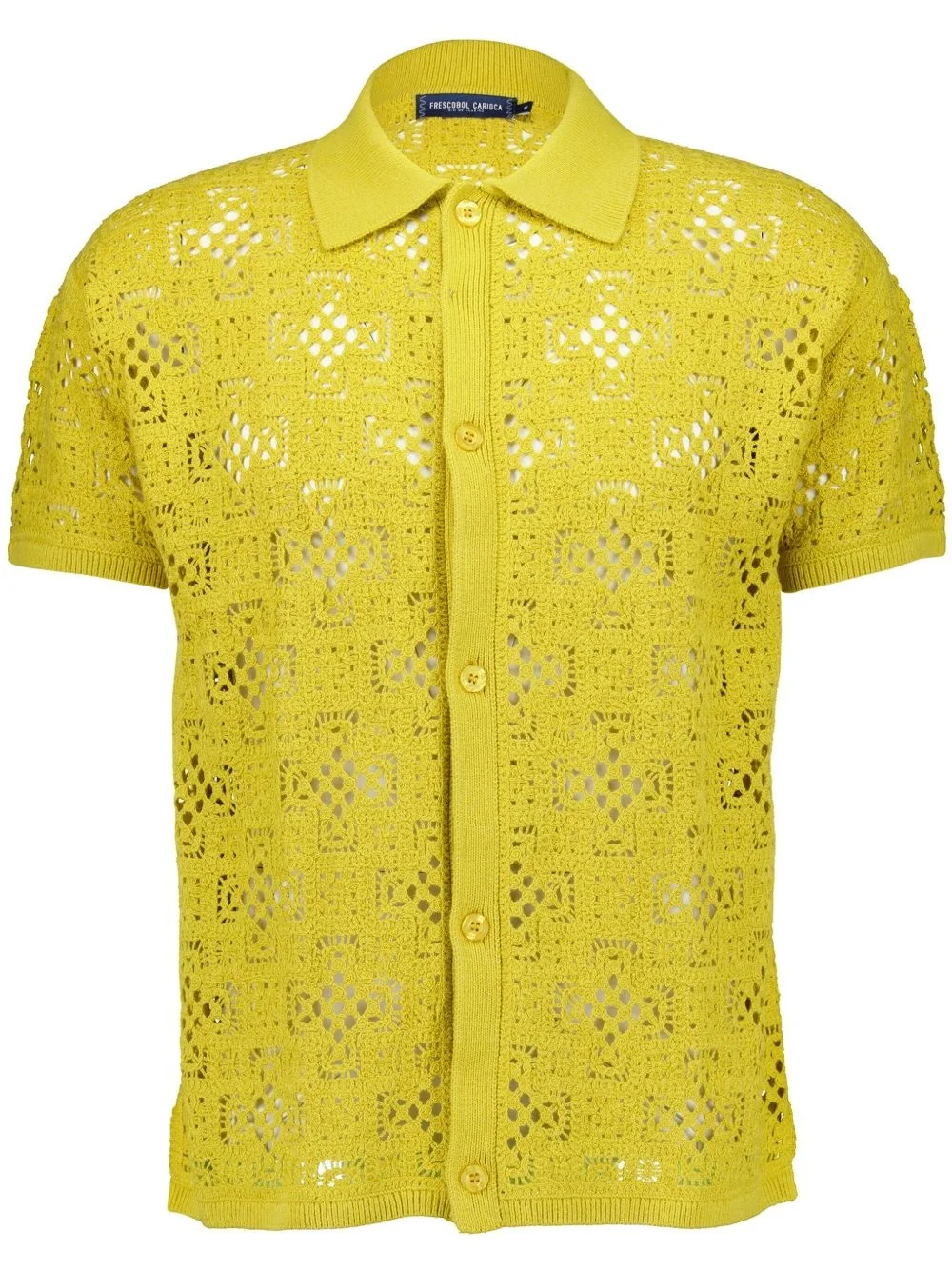 Angra Clube Raul Highlights - Citron yellow - Cotton - Crochet - Spread collar - Front button fastening - Straight hem Imported Composition Cotton 100% Washing instructions Machine Wash