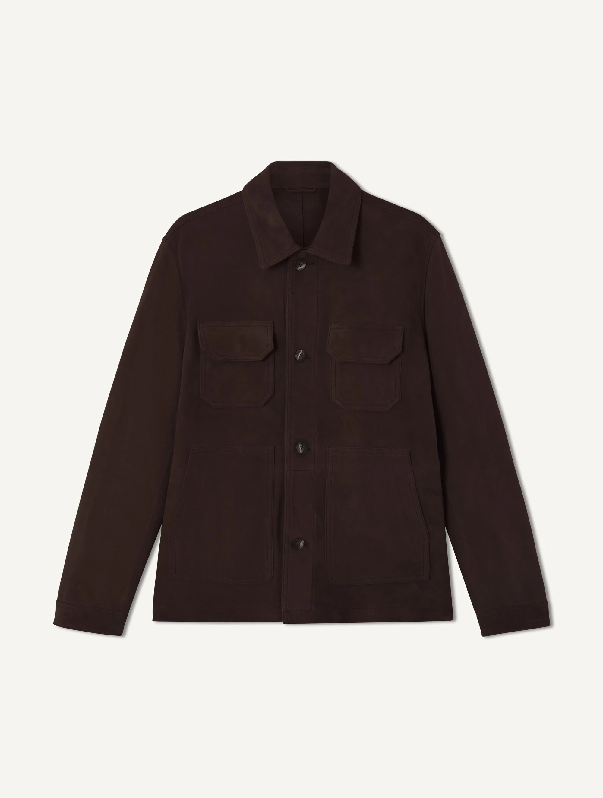 Crafted from superior quality 100% goat suede, this Ravi overshirt is masterfully designed for a refined nap and intense depth of colour. Featuring flap closure utility pockets and stone style buttons, crease-resistant goatskin suede is ultra-soft whilst ensuring durability and longevity. A classic overshirt cut finished with refined tonal stiching, for a highly-luxurious approach to outerwear. Product Details COMPOSITION: 100% goat suede CARE: Spot clean DETAILS: Regular fit Classic collar Front button closure Imitation stone buttons