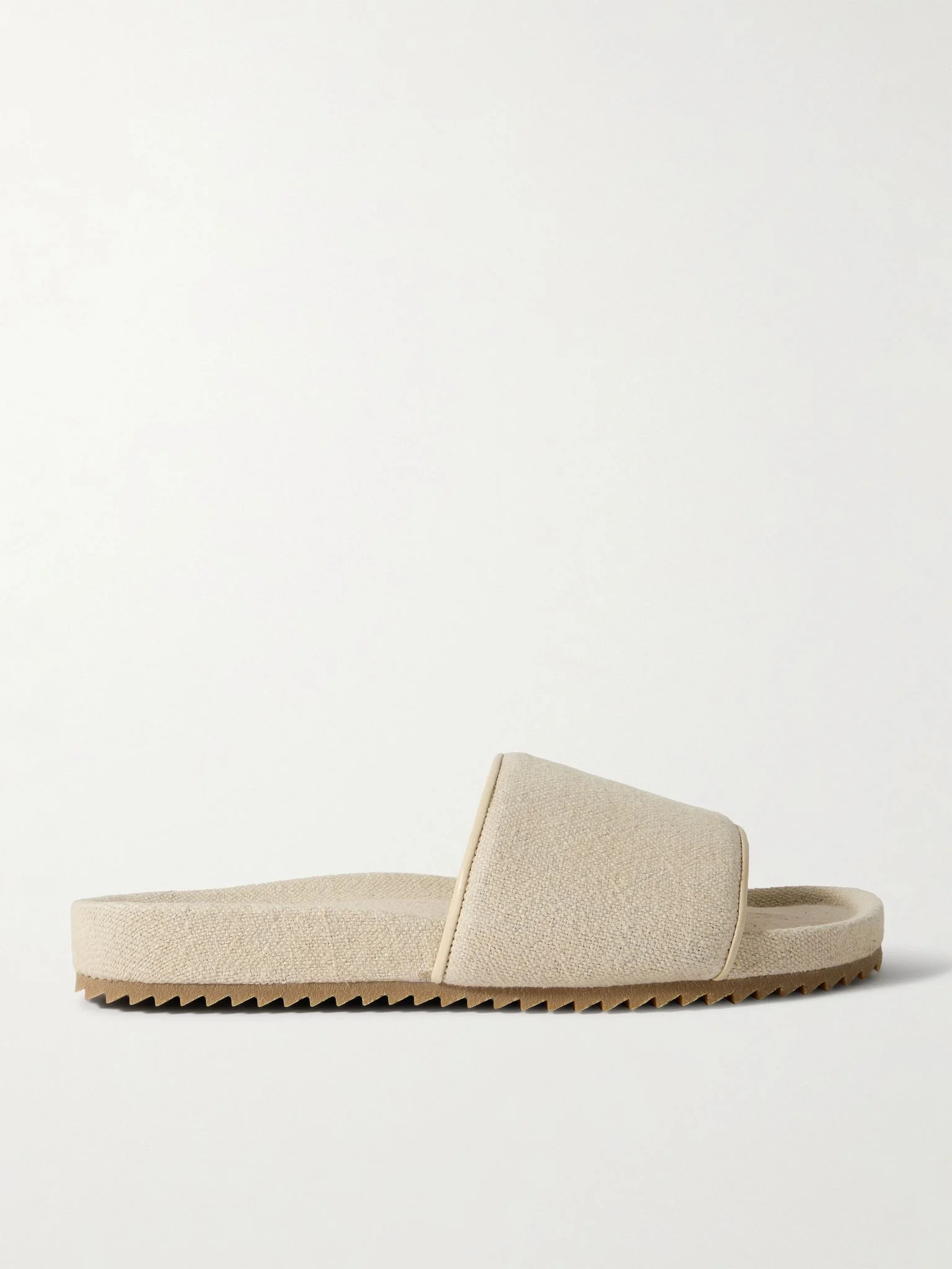 Frescobol Carioca's 'Renato' slides are crafted from linen that's breathable and moisture-wicking, so they're an ideal choice for warmer climates. The leather-lined padded straps and moulded footbeds ensure comfort, while the serrated soles provide plenty of grip. Size & Fit - Fits true to size. Take your normal size - European sizing Details & Care - Ecru linen