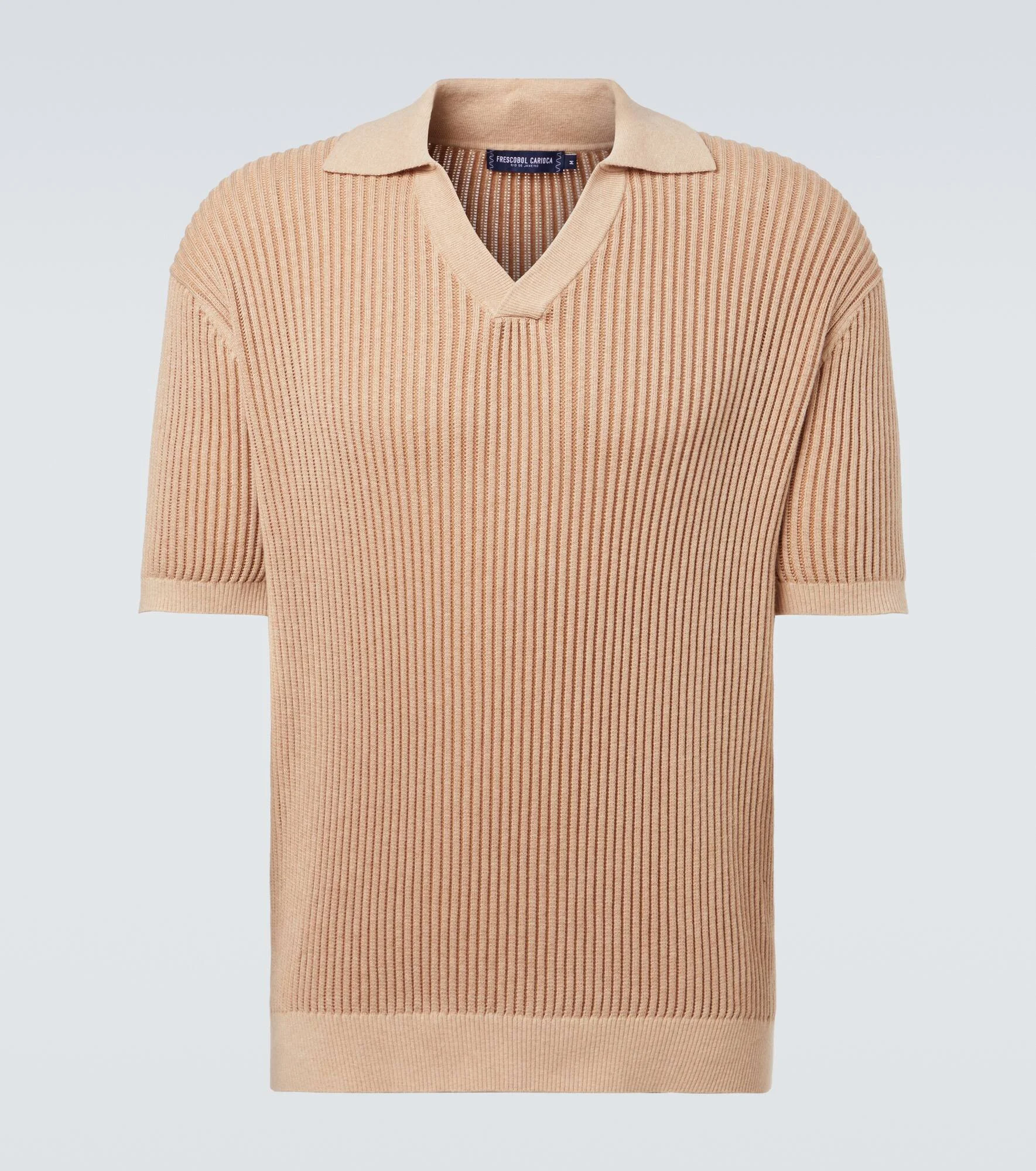 Inspired by the spirit of Rio de Janeiro, Frescobol Carioca's vacation styles effortless transition from beach to boardwalk. Spun from a yarn of cotton and cashmere, the Rino shirt features a polo collar and ribbed-knit trims. Product Details - Material: 95% cotton, 5% cashmere - Care instructions: hand wash - Made in Romania - Color: beige - Designer color name: Beige - Item color: beige - Collar: polo collar - Cuff: ribbed - Hem: ribbed - Item number: P01140984 Size & Fit - True to size - Straight fit - Slightly stretchy fabric - Falls to the hip - The model in the picture is 185cm-6'1" and wearing a size L