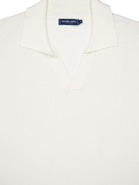 knitted polo shirt Highlights - White - Cotton-silk blend - Fine knit - Polo collar - V-neck - Ribbed cuffs and hem Made in Italy Composition Cotton 87%, Silk 13% SIZE & FIT Measurement CHEST 42.51 in(108 cm) SLEEVE LENGTH 18.89 in(48 cm) LENGTH 27.55 in(70 cm) Shoulder Width 18.89 in(48 cm)