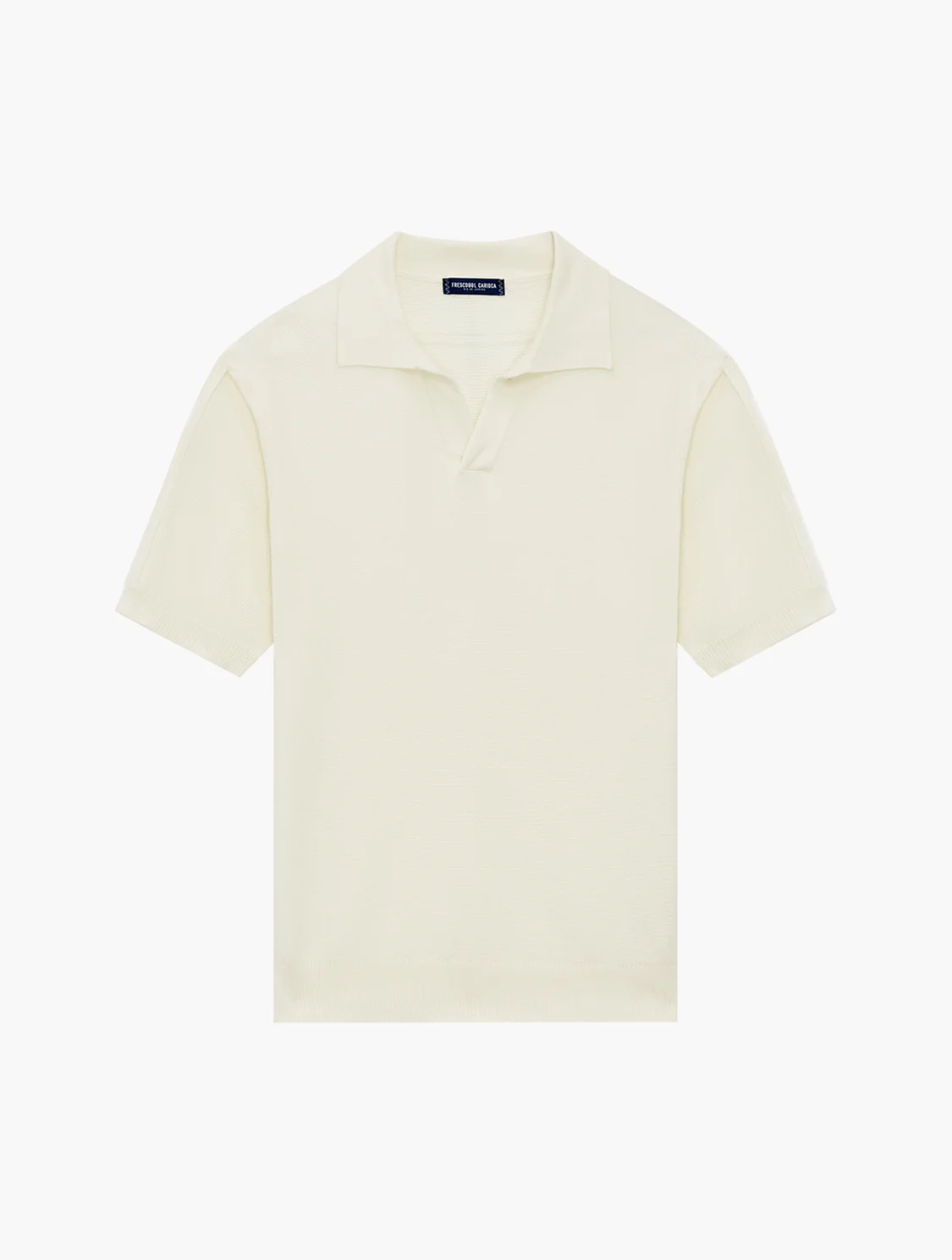 A wardrobe essential, our Rino is a modern take on a classic. A buttonless polo crafted in a soft textured cotton, cool enough for warmer days without losing versatility. Style with smart trousers for work, or relaxed shorts for summer. Product Details Regular Fit Buttonless V Collar 14gg Cotton-Silk Made from 87% Cotton and 13% Silk Crafted in Italy Customers recommend sizing down