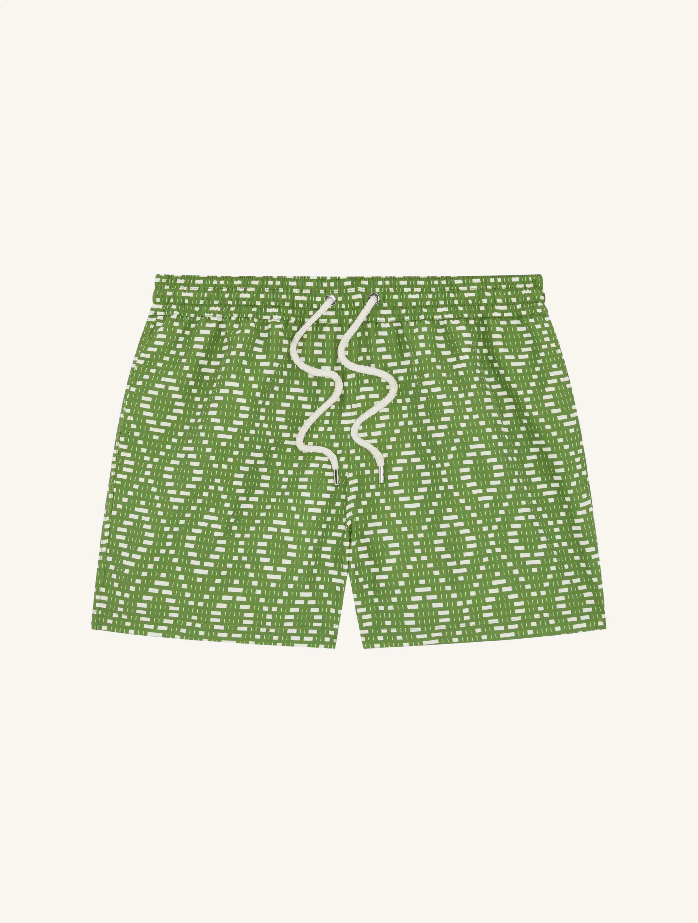 Our best-selling Rio is cut for a sport fit and designed for versatility and movement in homage to its namesake silhouette. Cool and casual with an adjustable, drawstring waist, these quick-dry swim shorts feature bespoke Raffia Angra print, reimagining the calcadao of the shores of Angra dos Reis into an intricately woven rattan pattern. Product Details COMPOSITION: 100% recycled polyester CARE: Machine washable at 30 degrees DETAILS: Drawstring waist Branded cord-ends 100% recycled polyester mesh lining Back pocket with button-closure MODEL MEASUREMENTS SKU 2646-879 Model wears size M Model measures: Height: 6"1, Waist 31", Chest 39.5''