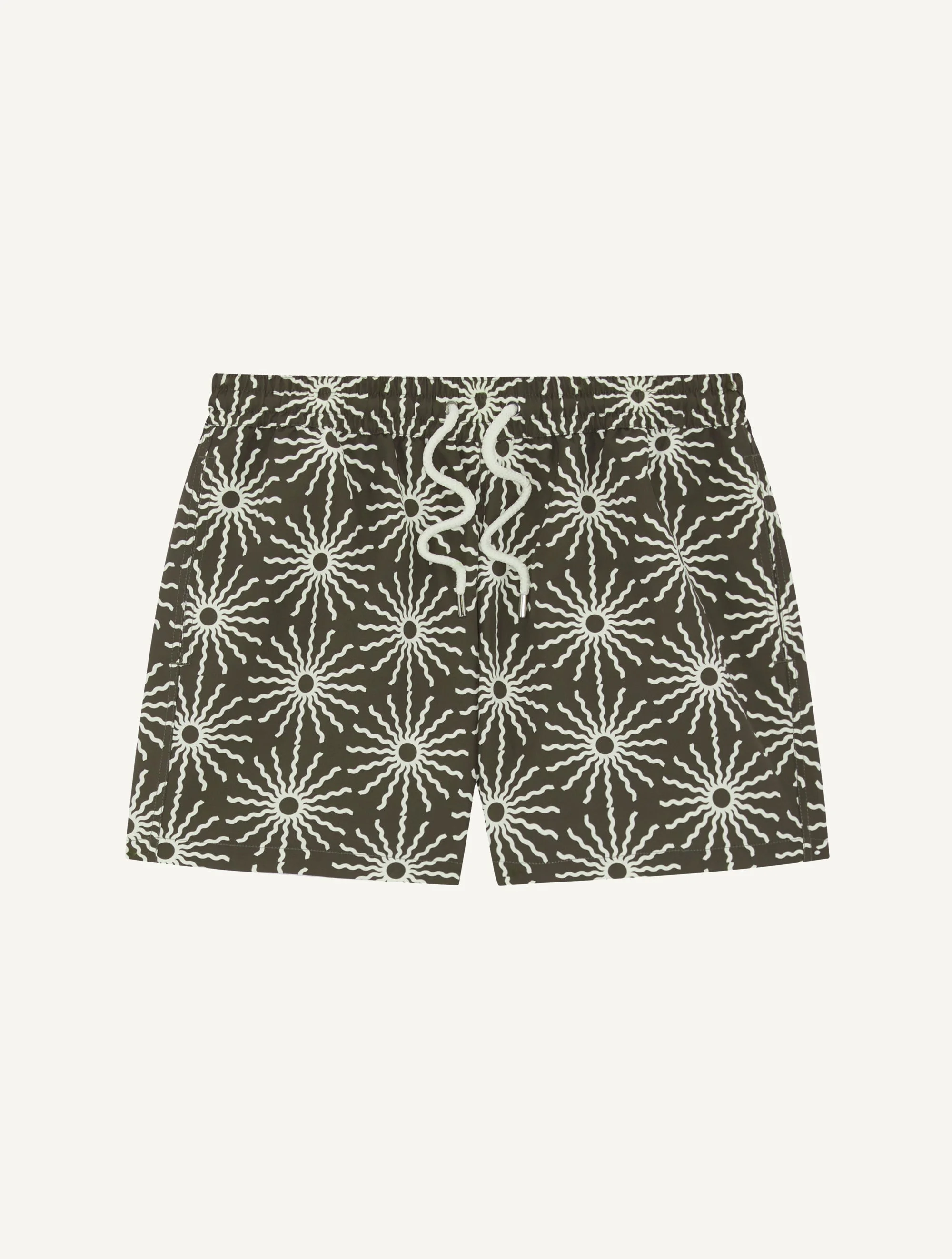 Our best-selling Rio is cut for a sport fit and designed for versatility and movement in homage to its namesake silhouette. Cool and casual with an adjustable, drawstring waist, these quick-dry swim shorts feature a bespoke O Sol motif that pays homage to our ever-sunny muse city of Rio De Janeiro. The simplified hand-drawn illustration is a subtle nod to our iconic Copacabana wave print. Product Details COMPOSITION: 100% recycled polyester CARE: Machine washable at 30 degrees DETAILS: Drawstring waist Branded cord-ends 100% recycled polyester mesh lining Back pocket with button-closure MODEL MEASUREMENTS SKU 2614-849 MODEL WEARS SIZE M MODEL MEASURES: HEIGHT: 6'2", WAIST 29", CHEST: 33"