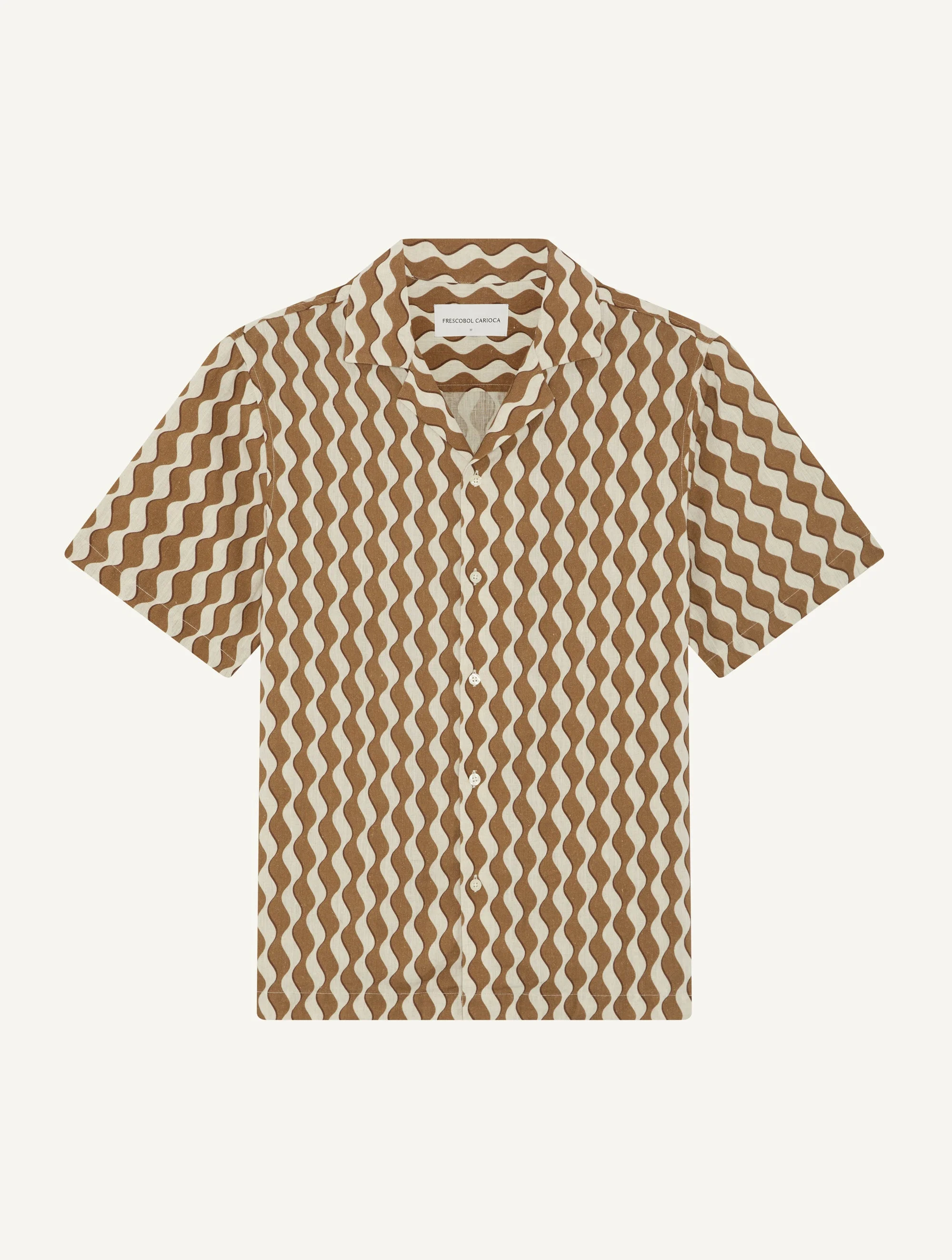 Roberto is crafted from lightweight, breathable linen in a relaxed fit, detailed with a camp collar for semi-casual style. Featuring Listra print, our seasonal, striped iteration of the iconic Copacabana calcadao wave. A conversation-starting statement shirt. Product Details COMPOSITION: 100% linen CARE: Machine washable at 30 degrees DETAILS: Camp collar Tonal imitation mother-of-pearl buttons Relaxed fit All-over bespoke print MODEL MEASUREMENTS SKU 2780-49 Model wears a size M Model measures: Height 6'0", Waist 29", Chest 36"