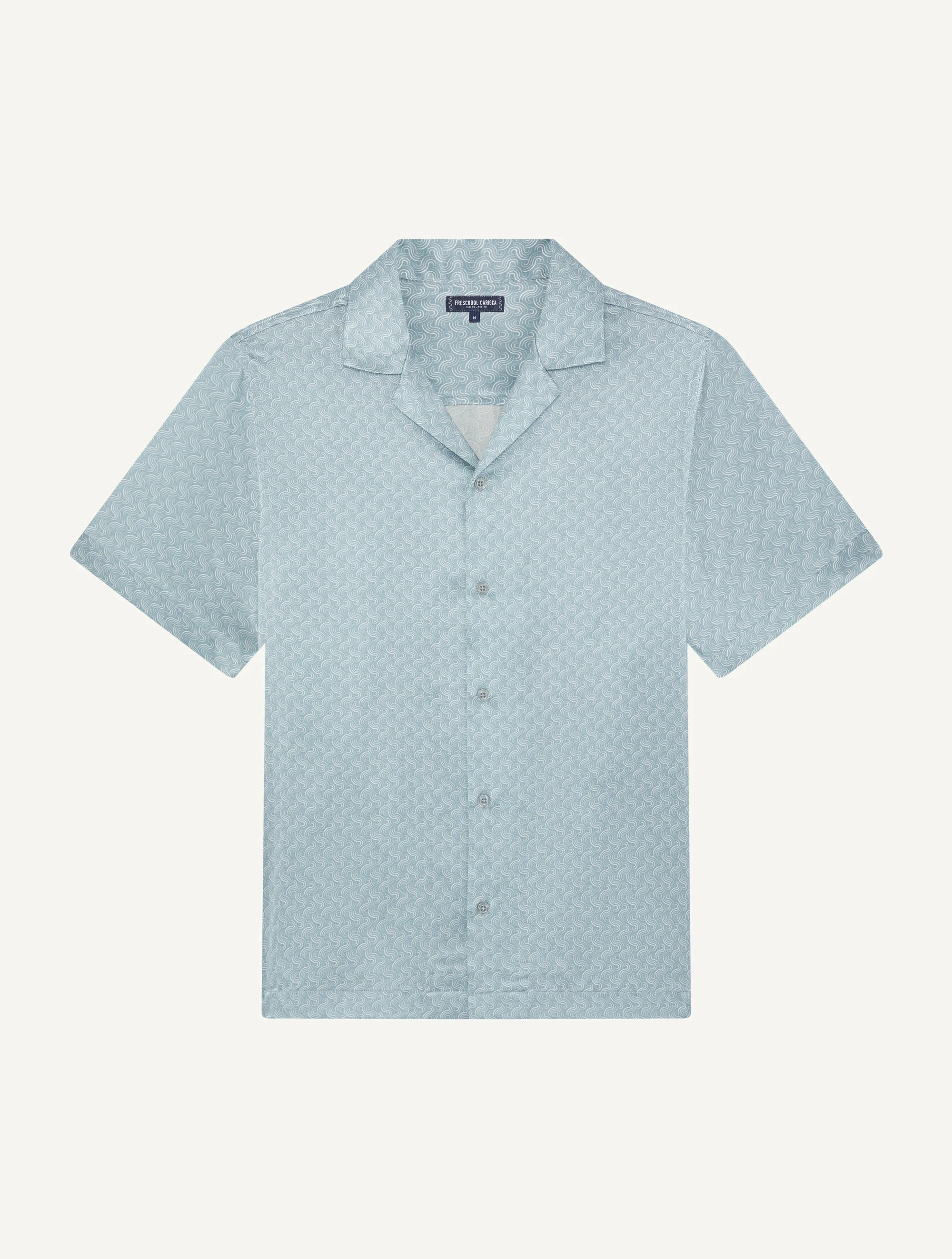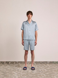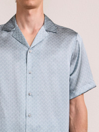 Elevate your wardrobe with Roberto our 100% silk shirt, detailed with a relaxed camp collar and designed for the perfect drape. Roberto features bespoke Wood Knot print inspired by the intricate knots of aged wood. Designed to capture the fluid motion of their swirling grain; pair with matching Palma silk shorts for a luxurious full printed look. Designed for evening wear. Product Details COMPOSITION 100% Silk CARE: Hand Wash DETAILS: Camp collar Branded button front closure Relaxed fit All-over bespoke print MODEL MEASUREMENTS SKU 2707-902 Model wears a size M Model measures: Height 6"2, Waist 29.5", Chest 34.5"