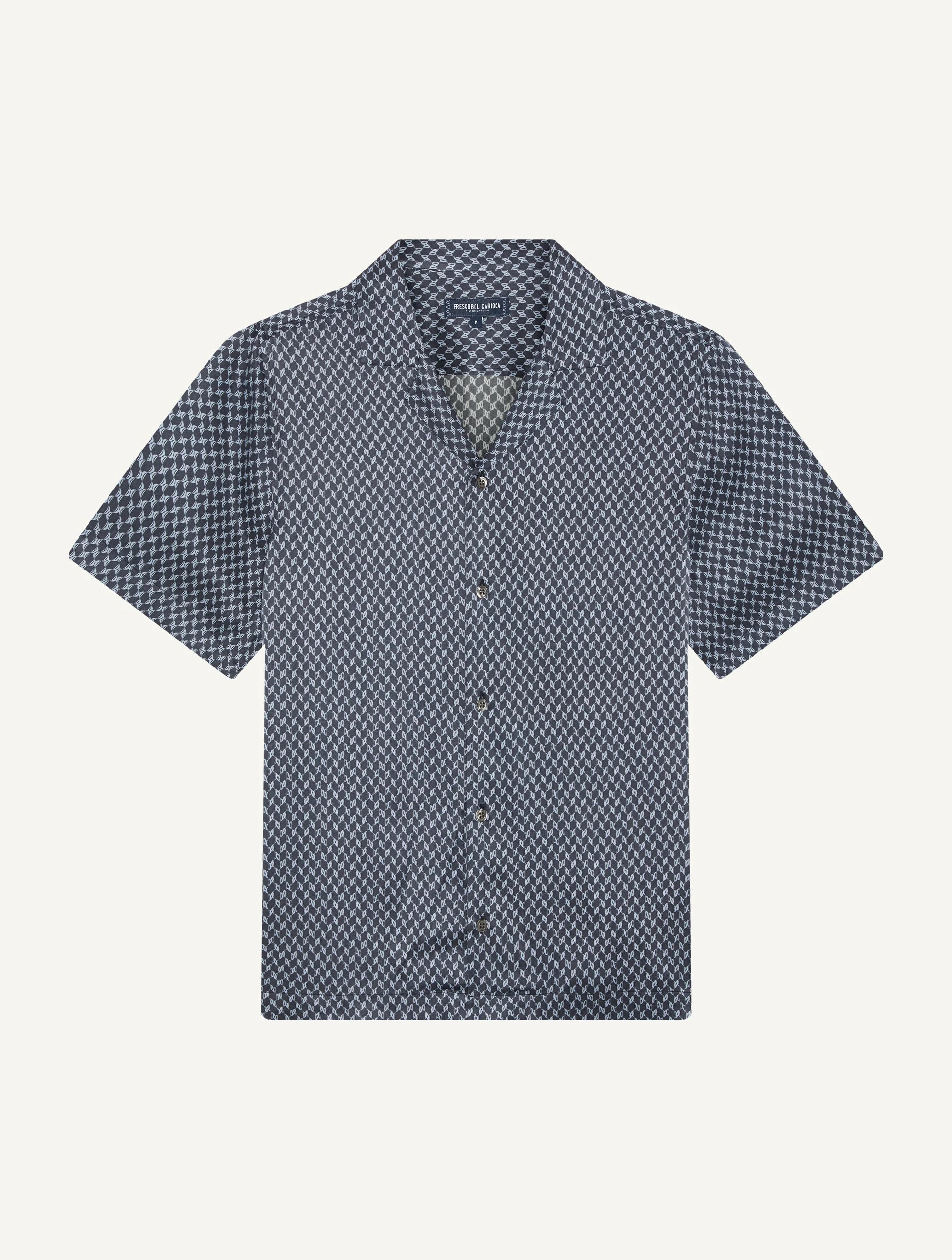 Elevate your wardrobe with Roberto our 100% printed silk shirt, detailed with a relaxed camp collar and designed for the perfect drape. Roberto features bespoke Micro Copa print that plays with scale, layering and rotation to reinvent house calcadao-inspired Copacabana wave motif Product Details COMPOSITION: 100% silk CARE: Hand wash DETAILS: Camp collar Branded button front closure Relaxed/loose fit All-over custom print MODEL MEASUREMENTS SKU 2594-841 MODEL WEARS SIZE M MODEL MEASURES: HEIGHT: 6'2", WAIST 29", CHEST: 33"