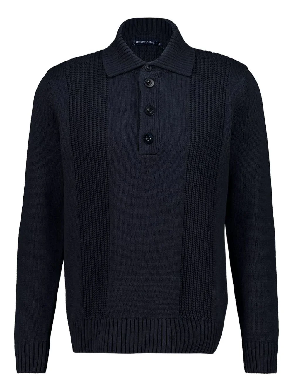 Romano polo shirt Highlights - Navy blue - Ribbed knit - Button fastening - Long sleeves - Polo collar - Straight hem Imported Composition Cotton 95%, Cashmere 5% Washing instructions Read Manufacturer Guidelines