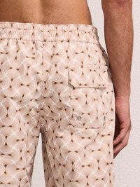 These longer-line Santos swim shorts feature our bespoke Copacabana Espiral print; a contemporary reimagining of our house Copacabana print using fine linear tiling to evoke the sense of movement of Rio's iconic coastline. Quick-drying and adjustable at the waist, the relaxed board silhouette makes for the ideal pool-side pair. Product Details COMPOSITION: 100% recycled polyester CARE: Machine washable at 30 degrees DETAILS: Drawstring waist Branded cord-ends Internal recycled polyester mesh lining Back patch pocket with flap MODEL MEASUREMENTS SKU 2805-49 Model wears a size M Model measures: Height 6'0", Waist 29", Chest 36"