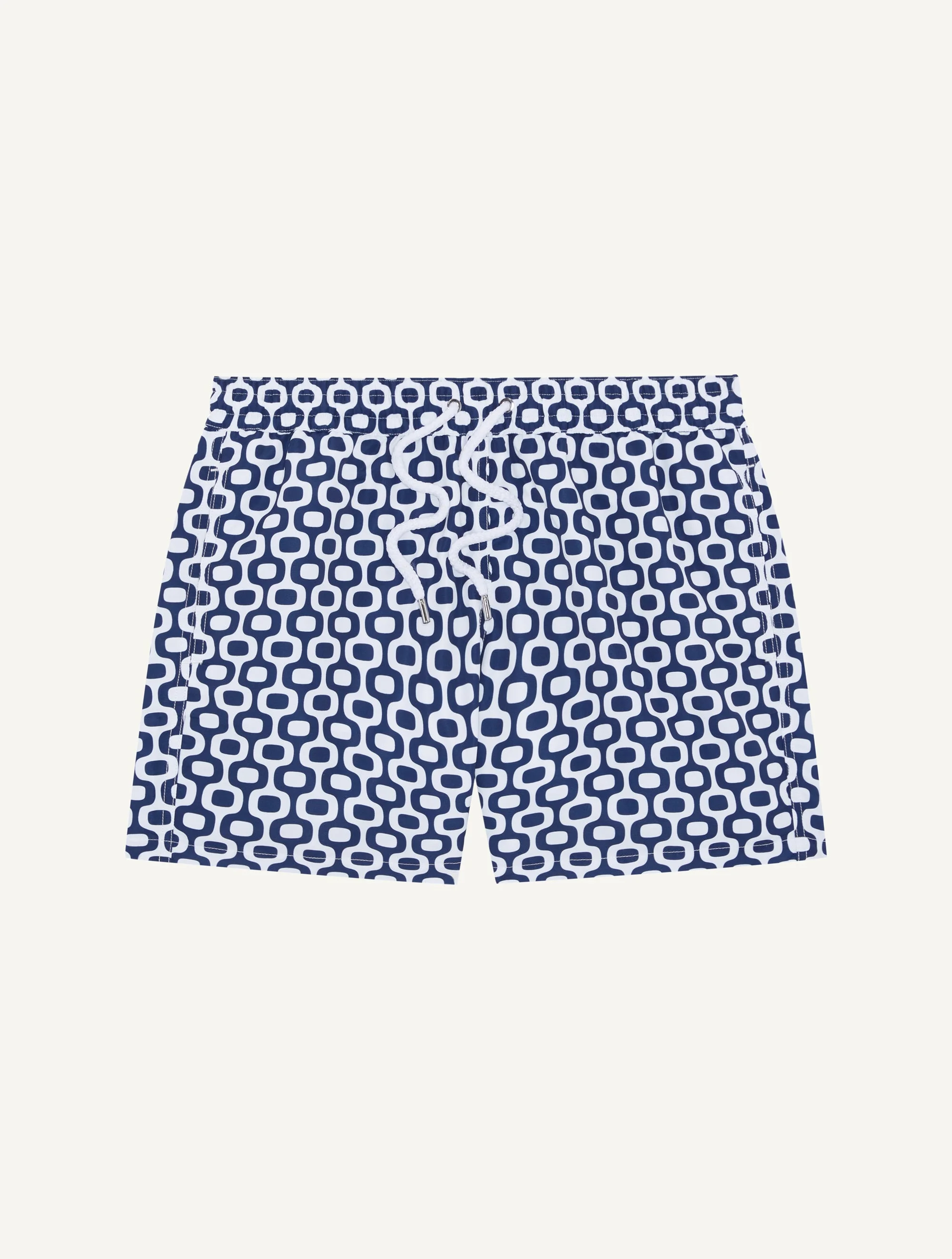 Our best-selling Sport fit is designed for versatility and movement in homage to its namesake category. Cool and casual with an adjustable, drawstring waist, these quick-dry swim shorts are a holiday wardrobe staple. Featuring a bespoke brand heritage print, a tribute to Rio De Janeiro's iconic sidewalks, the Ipanema motif is one of the first prints designed by FRESCOBOL CARIOCA. An integral piece in the House Collection. Product Details COMPOSITION: 100% Recycled Polyester CARE: Machine washable at 30 degrees DETAILS: - Bespoke all over print - Drawstring waist - Branded cord-ends - Back pocket with button-closure - Internal mesh lining MODEL MEASUREMENTS SKU 1008-04 Model wears a size M Model measures: Height 6"0, Waist 29", Chest 36"