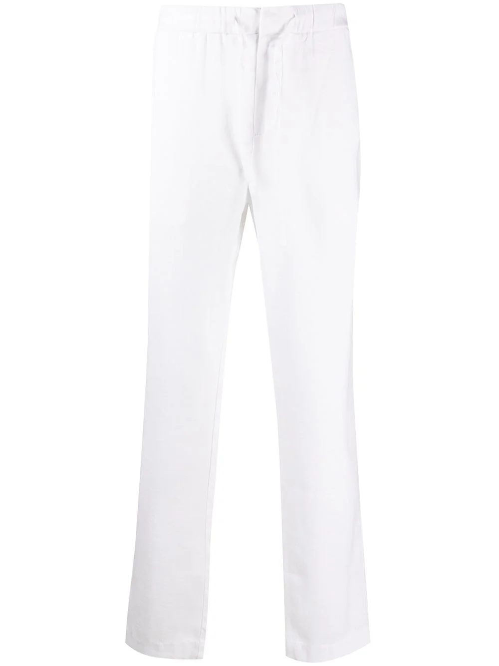 straight leg drawstring waist trousers Highlights - White - Linen blend - Two side slit pockets - Rear slit pocket - . Imported Composition Linen/Flax 54%, Cotton 46% SIZE & FIT Model measurements Height 6 ft 2 in(1.87 m) Bust/Chest 37.79 in(96 cm) Hips 37.79 in(96 cm) Waist 30.31 in(77 cm) Measurement FRONT RISE 12.4 in(31.5 cm) INSIDE LEG 29.52 in(75 cm) HIPS 45.27 in(115 cm) WAIST 33.46 in(85 cm) FittingInformation This piece fits true to size. We recommend you get your regular size Designed for a slim fit at the waist and loose over the leg Made with a mid-weight non-stretch fabric Washing instructions Machine Wash