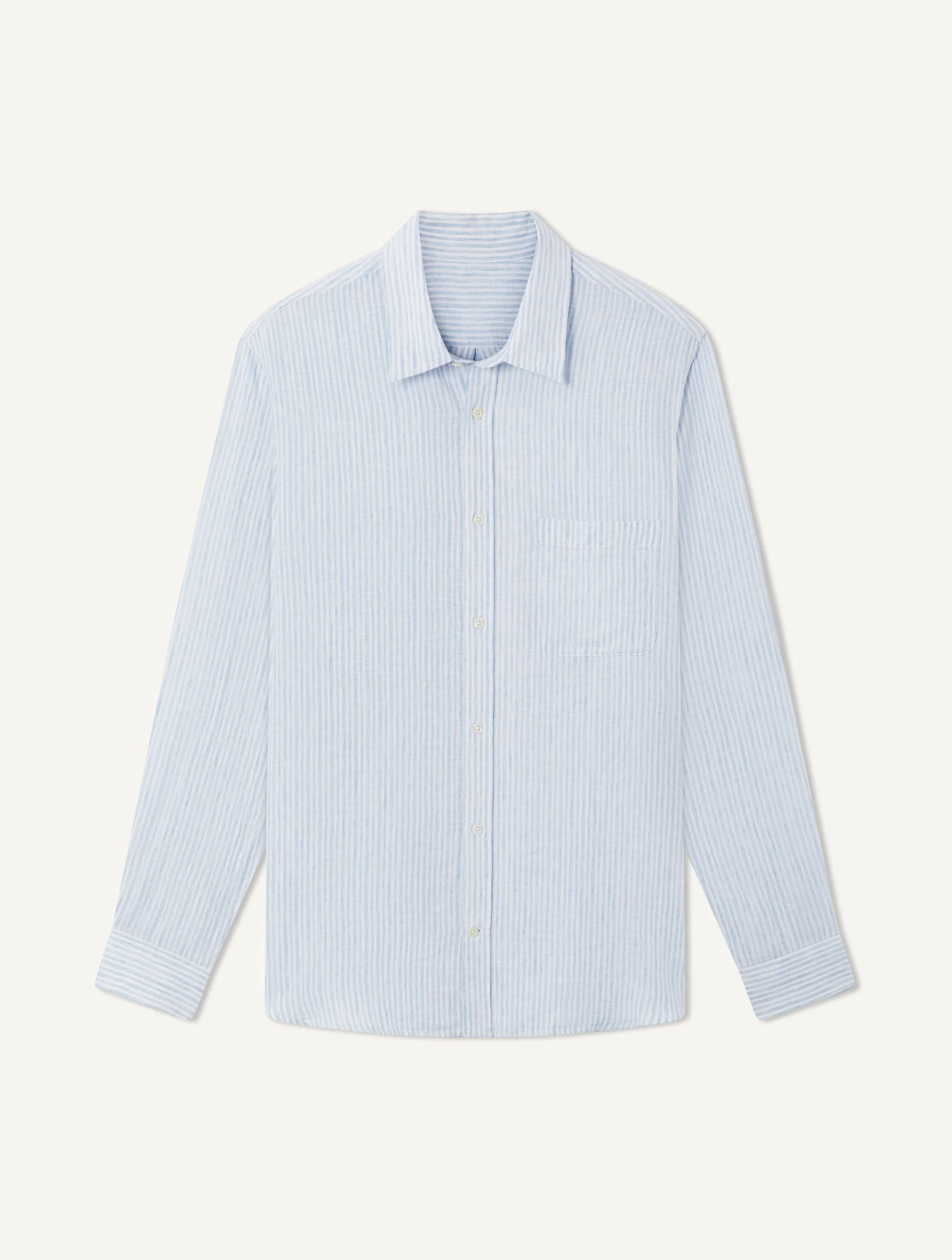Telles is a relaxed fit long-sleeved linen staple, crafted from our house linen that's finished with aloe vera for an ultra-soft handfeel. Fine stripe detailing and a classic point collar, add a sartorial touch to Telles' relaxed silhouette, designed for daily wear. Product Details COMPOSITION: 100% linen, Aloe finish CARE: Machine washable at 30 degrees DETAILS: Point collar Chest pocket Box pleat on the back Branded imitation mother of pearl buttons Relaxed fit MODEL MEASUREMENTS SKU 2856-976 Model wears a size M Model measures: Height 6'2", Waist 30", Chest 36"