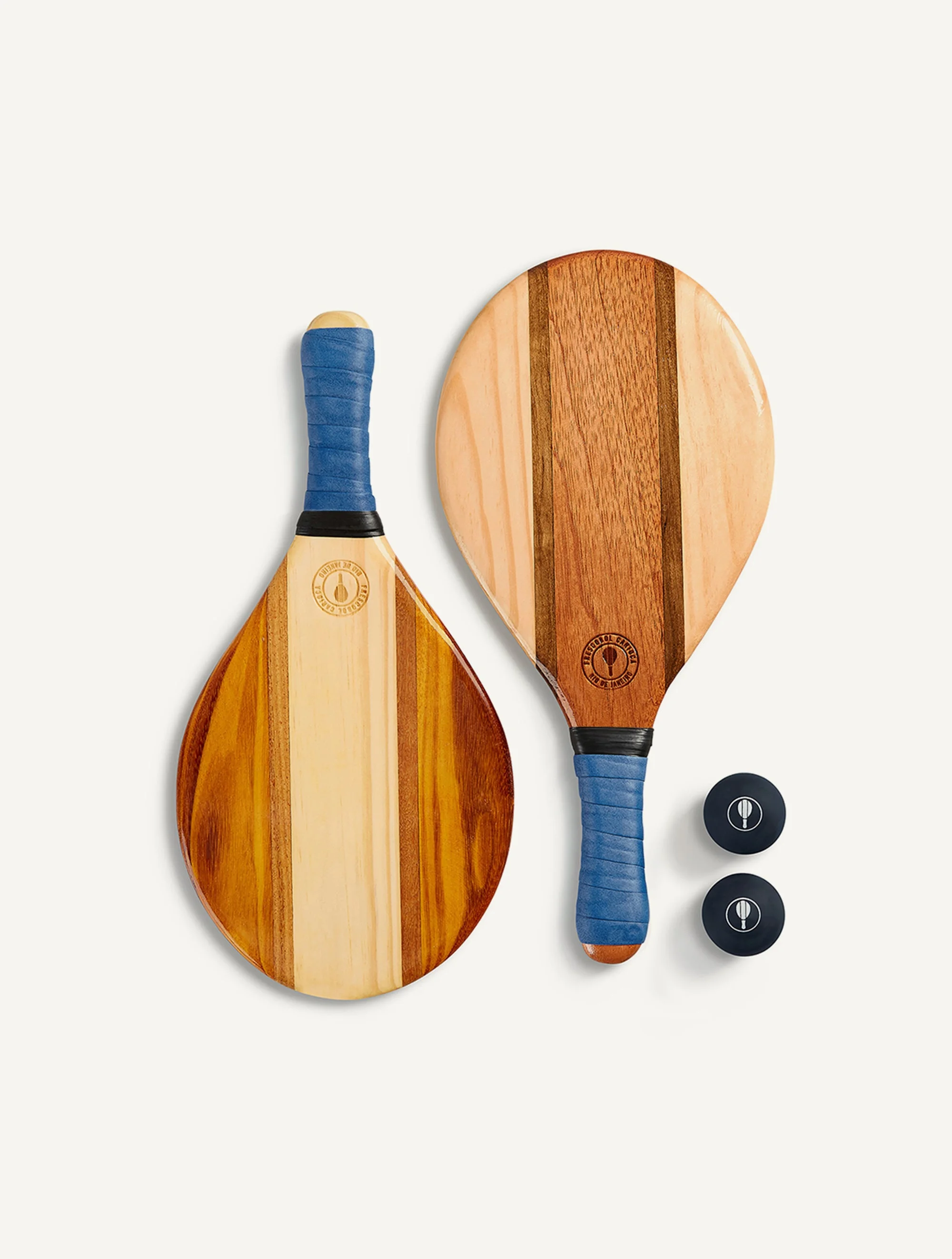 Born on the beaches of Rio, the game of frescobol is a true cornerstone of Carioca culture. Handmade by skilled marceneiros, our eponymous beach bats are crafted using salvaged offcuts from the famed Brazilian furniture industry, each one a unique work of art.Inspired by the untouched beaches of one of our favourite towns - the perfect spot for a game of frescobol - the Trancoso Beach Bat offers a truly minimalist approach. 5 interlocking pieces of wood are pieced together for a clean and classic style, finished as always with our hand-wrapped neoprene grip. Product Details Neoprene Grip Heat Stamped Logo Water Resistant Resin Coating Brazilian Wood Offcuts Made in Brazil Complimentary Carry Sack Please Note: Our bats are handmade by craftsmen in Brazil, this may mean slight variances in weight, composition and colour, only lending to their uniqueness.