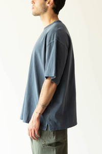 Designed with the goal of making a t-shirt with the highest durability as possible, the OG Pigment Dyed Half Tee is a perfect tee. Woven with a new knitting technique, the 10-count single heavyweight fabric has a soft touch that has been washed and processed. The neckline has a lip with excellent resilience that has been double-worked to ensure that it never stretches, double wrapping neck to prevent sagging and prevent loss of shape. After completing the product, garment dyeing was applied to create a subtle yet unique color. Each side is gusseted to allow for comfortable and natural wearing by applying an oversized fit that is not excessive for a comfortable summer fit. Fits true to size. Model is 6'2, 150lbs, wearing size XL. - 100% Cotton - Gusseted Sides - Garment Dyed - Heavyweight - Maximum Durability - Oversized Fit - Blue