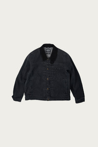 A classic trucker silhouette finished in a washed black denim with a tonal dark collar. Slight fading through the seams gives it depth without feeling distressed. Traditional button front, chest pocket detail, and clean welt hand pockets bring a subtle workwear feel. Strong with black trousers for a clean monochrome look, or paired with indigo denim and leather boots for contrast. An easy outer layer that works year round.
