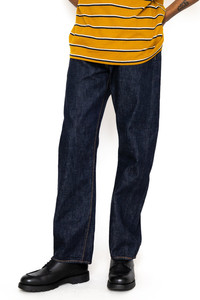 - Color: Genuine Indigo - Wide Straight Fit - Fabric: 13.75oz Fullcount Original Japanese Selvedge Denim - One Wash - 100% Zimbabwe Cotton - Goat Skin Leather Patch - 100% Cotton Thread Sewing Construction - Made In Japan - Style #: 0105W - Model is 6ft wearing a size 30