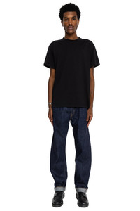 Fullcount has always prioritized stress-free comfort, and has offered the 13.7oz denim as their flagship material for many years. While maintaining that same fade potential, Fullcount has now created a lighter and softer 11.5oz SS denim. Aside from being ridiculously comfortable, this material also nicely reproduces that unique look you find in vintage items - Color: Genuine Indigo - Fit between 1101 and 1108. The thigh is close to 1108, and the under the knee is close to 1101. - Slanted back center belt loop - Fabric: 11.5oz Fullcount Original Japanese Selvedge Denim - One Wash - 100% Zimbabwe Cotton - Goat Skin Leather Patch - 100% Cotton Thread Sewing Construction - Made In Japan - Model is 6'2 wearing a size 32