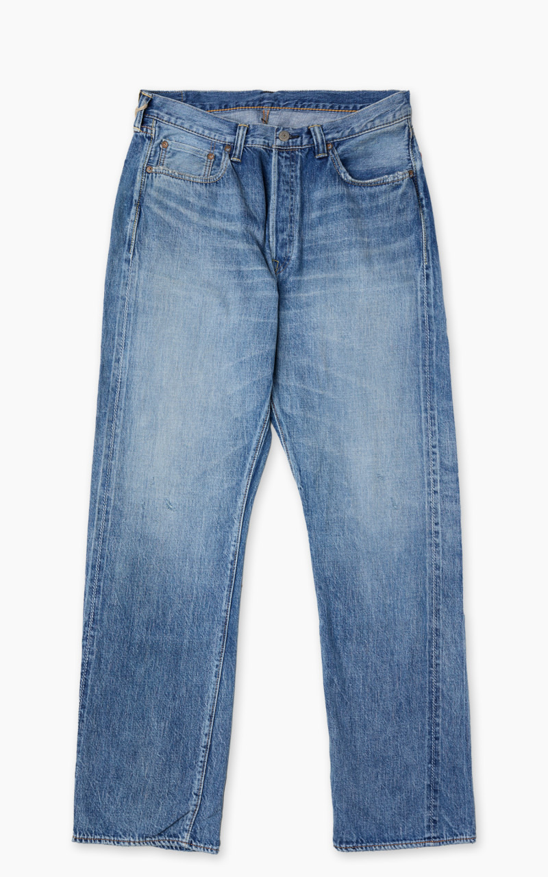- Style: 1341-1101SS - Fit: Loose fit - Straight leg - High rise - Color: Indigo Blue - Material: 100% cotton - Made of 11.5oz original selvedge denim - 100% Zimbabwe cotton - Dartford wash - Slightly yellowed tint - Copper rivets - Button fly - Vegetable tanned leather patch - Yellow threads - Made in Japan Our model is 183cm, 80kg - wears size 33/32