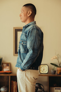 Fullcount’s legendary More Than Real Type II jacket turns denim into storytelling. It's made from 13.7 oz unsanforized selvedge denim woven with Zimbabwean cotton—rigid, substantial, and rich in texture, then treated with their advanced "Real Killer" aging wash that pushes it well past vintage realism. Classic Type II styling is intact: two chest flap pockets, action pleats, and side waist adjuster tabs for a clean yet utilitarian fit. Copper rivets reinforce stress points, while stitchwork and tuck pleats across the back maintain that boxy structure with just enough movement - 13.7oz Original Selvedge Denim - 2102 Type 2 Silhouette - Action pleats at the front - Two flap pockets on the chest and side adjustment straps - Copper riveted at stress points for durability - Zimbabwean cotton 100% - Made in Okayama, Japan Joe is 6', wearing size 42.