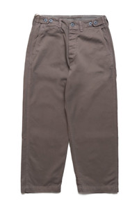 Fullcount x Blue in Green exclusive model - M43 field pants used by the US military from 1943 to the late 40's. - Garment dyed - These military pants feature work pants' signature colors. - A special wash process creates a faded look. - Original collaboration name label - The waist can be adjusted with a button adjuster. In addition, the hem has a button adjuster, so you can tighten it down and wear it. - Wide fit - Distressed - Button fly - 100% Cotton - Color: Grey - Made In Japan - They fit smaller than normal US sizing - Model is 6'2 wearing a size 32