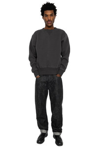 Fullcount has always prioritized stress-free comfort, and has offered the 13.7oz denim as their flagship material for many years. While maintaining that same fade potential, Fullcount has now created a lighter and softer 11.5oz SS denim. Aside from being ridiculously comfortable, this material also nicely reproduces that unique look you find in vintage items - Color: Black x Ecru - Fit between 1101 and 1108. The thigh is close to 1108, and the under the knee is close to 1101. - Slanted back center belt loop - Fabric: 11.5oz Fullcount Original Japanese Selvedge Denim - One Wash - 100% Zimbabwe Cotton - Goat Skin Leather Patch - 100% Cotton Thread Sewing Construction - Made In Japan - Model is 6'2 wearing a size 31