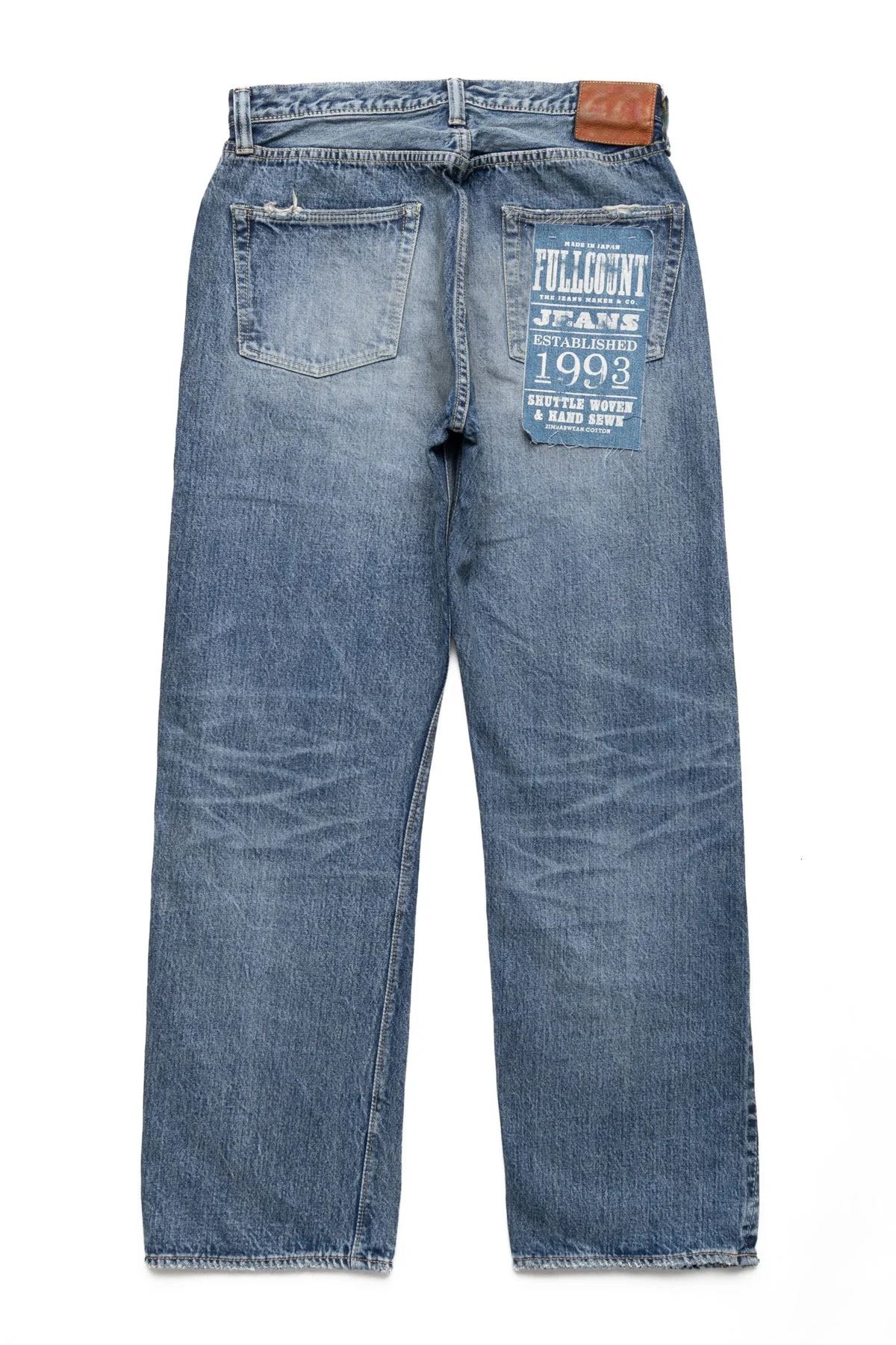 US Limited Model [14.5oz WWII Model Original Selvedge Denim] A vintage WWll model denim was analyzed and reproduced.To achieve an authentically uneven texture, Fullcount carefully analyzed the shape of the irregularities in the original denim and employed rope dyeing techniques to intentionally create variations in color. This process results in subtle differences in dyeing and creates areas of shadowing as the denim fades, mirroring the characteristics of the vintage war model.Additionally, Fullcount painstakingly counted the threads on the vintage sample to ensure that theri reproduction matches the original thread count. WWll model selvedge denim has been used in the 0105 model. The leather patch is stamped with a star-spangled flag, and the lining is charcoal gray herringbone.The sewing thread is yellow. - 14.5oz WWII Model Original Selvedge Denim - Color: Genuine Indigo - Wide Straight Fit - Charcoal grey herringbone pocket bag - Yellow Thread Sewing Construction - One Wash - 100% Cotton - Goat Skin Leather Patch - Made In Japan - Model is 6'2 wearing a size 31 Dartford, located about 25km southeast of London, led to the formation of the Rolling Stones in 1961 when Mick Jagger and Keith Richards met on Platform 2 of this station. Inspired by the color of the denim jacket worn by Mick Jagger when he was young.