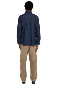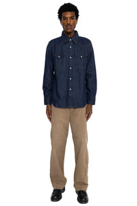 - Color : Indigo - 8oz Selvedge Denim Western Shirt. - Two chest pockets - Pearl Snap buttons on chest and sleeve - Made in Okayama, Japan. - Model is 6'2 wearing a size 42