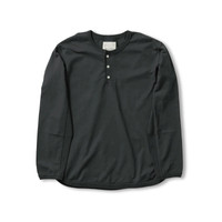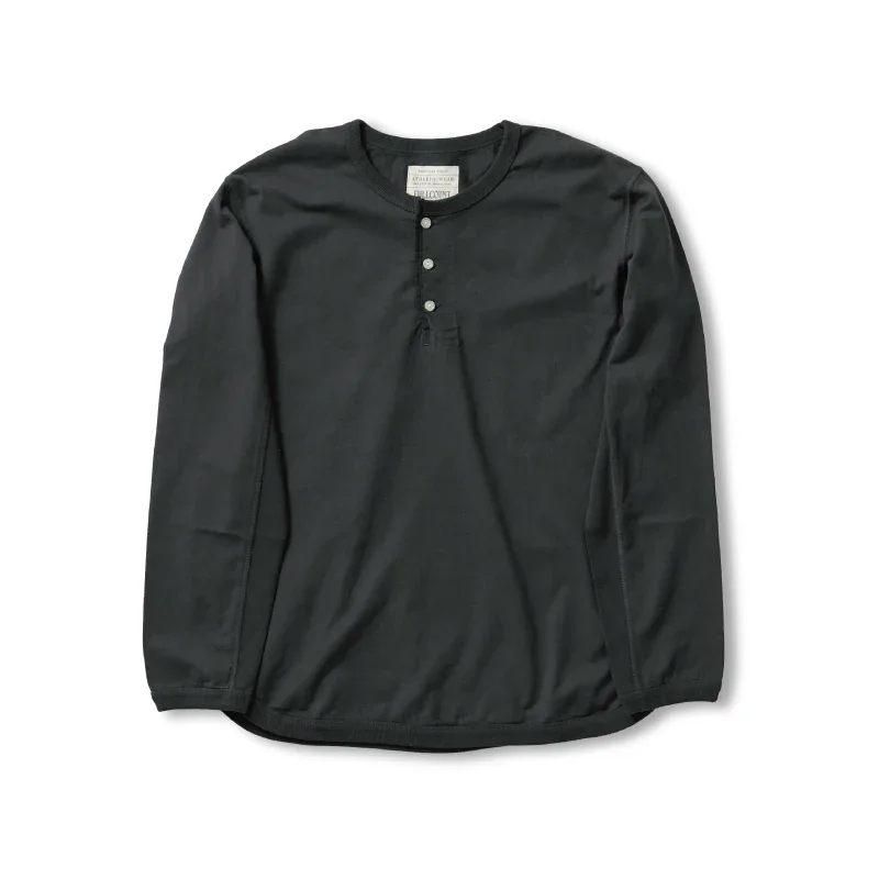 Fullcount's original heavyweight jersey is very sturdy and extremely soft, and makes for an excellent staple longsleeve henley. Woven with thick, 19-count cotton yarns and woven on vintage machines, this jersey is akin to traditional vintage American jersey - it offers a substantial hand and is woven in a way that gives the fabric and air-trapping quality, improving texture and comfort. Sewn with flat-seam constructed seams to improve comfort and allow the seams to lay flatter and look better, these henleys also feature elastic underarm ribbing for further improved comfort and better range of motion, as well as a half-bias bound placket to give a vintage look and improve the durability of the placket. - 100% cotton - 5222LH Flat Seam Heavyweight L/S Henley - Original Full Count jersey fabric - Flat seam construction - Three button henley neck - Half-bias bound placket - Mother of pearl buttons - Ribbed cuffs, collar, and hem - Elastic underarm ribbing - Sanforized & preshrunk - Made in Japan