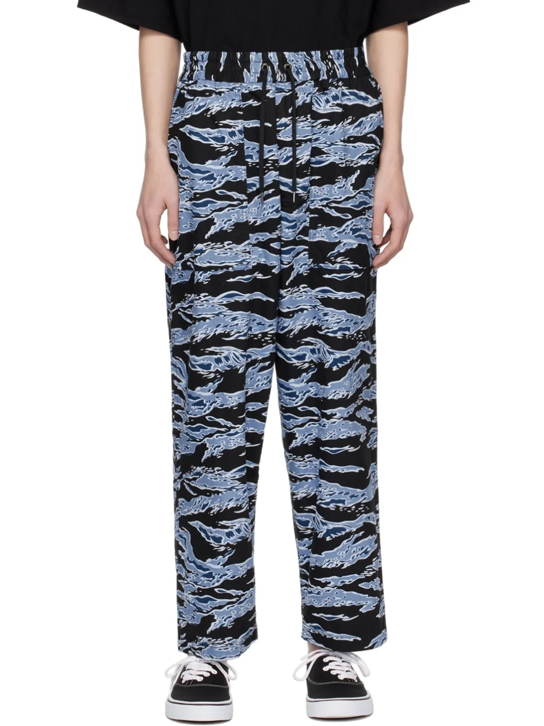 Cotton ripstop trousers. Graphic pattern throughout. · Drawstring at elasticized waistband · Four-pocket styling · Zip-fly Part of the Fumito Ganryu x PHENOMENON collaboration. Supplier color: Blue Body: 100% cotton. Lining: 100% polyester. Made in Japan 241180M191000