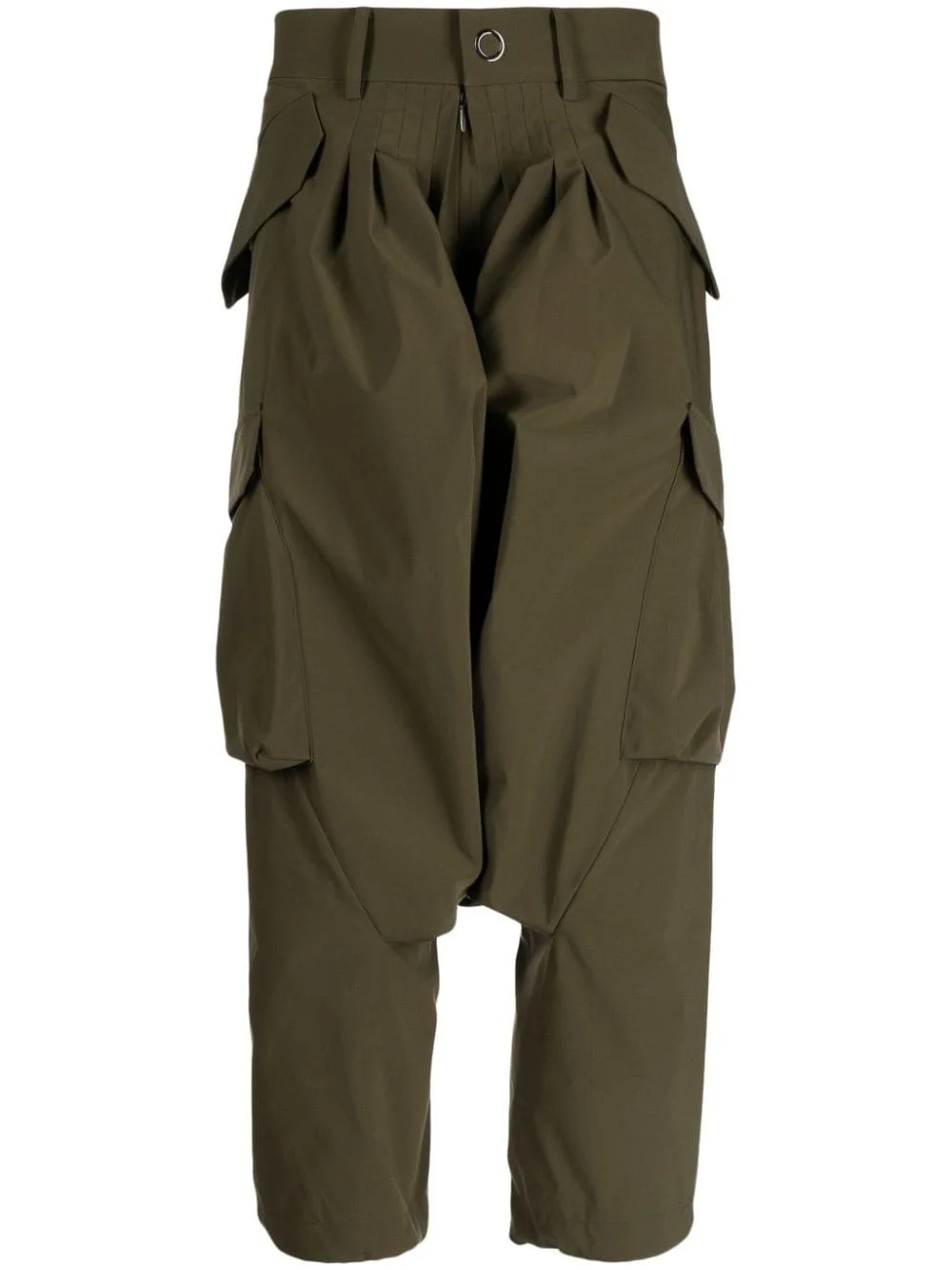 drop-crotch cargo trousers Highlights - Khaki - Belt loops - Pleat detailing - Front button and zip fastening - Drop crotch - Two side flap pockets - Two side cargo pockets Imported Composition Polyester 100% Lining: Polyester 100% Outer: Polyester 100%