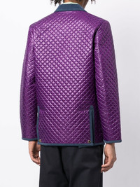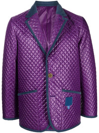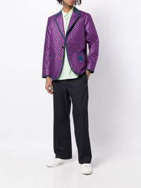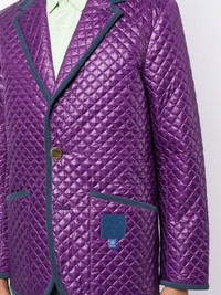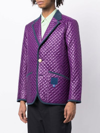quilted single-breasted blazer grape purple cotton quilted classic lapels button fastening long sleeves two side flap pockets Imported Composition Lining: Polyester 100% Outer: Polyester 100% Filling: Polyester 100% Cotton 95%, Polyurethane 5% SIZE & FIT Model measurements Height 6 ft 2 in(1.88 m) Bust/Chest 31.88 in(81 cm) Hips 35.82 in(91 cm) Waist 27.55 in(70 cm) FittingInformation This piece fits true to size. We recommend you get your regular size Cut for a loose fit Made with a lightweight non-stretch fabric Washing instructions Dry Clean Only