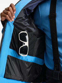 light blue colourblock design graphic bands iridescent finish multiple pockets thumbhole cuffs - Color: BLUE - Made in: China - Designer Style ID: I2001 6102 Composition and care Lining Composition Polyamide: 100.0%, Outer Composition Polyester: 82.0%, Lining Composition Polyester: 88.0%, Outer Composition Polyurethane: 18.0%, Lining Composition Elastane: 12.0%