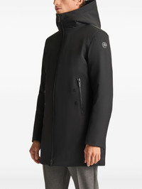 Gezi raincoat Highlights - Black - Down-feather filling - Padded design - Logo patch at the sleeve - Front zip fastening - Classic hood - Long sleeves - Two zip-fastening pockets - Internal slip pocket - Straight hem Imported Composition Outer: Polyamide 68%, Polyurethane 20%, Elastane 12% Lining: Polyester 100%, Polyamide 100%, Duck Down 80%, Duck Feathers 20%