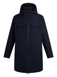 hooded zip-fastening parka Highlights - Navy blue - Zip fastening - Flap pockets - Hooded neckline - Welt pockets Imported Composition Polyester 72%, Polyurethane 28% Washing instructions Read Manufacturer Guidelines