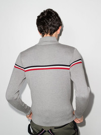 Wengen Fiz II zip-up cardigan Fusalp's Wengen Fiz II cardigan is defined by the tricolour band that adorns its chest, designed with the brand's heritage colours: navy blue, white and red. It is rib-knitted from merino wool and cut to a high-neck silhouette to ensure warmth. Imported Composition Merino 100% SIZE & FIT Model measurements Height 6 ft 2 in(1.87 m) Bust/Chest 36.41 in(92.5 cm) Hips 35.43 in(90 cm) Waist 29.52 in(75 cm) FittingInformation This piece fits true to size. We recommend you get your regular size Cut for a relaxed fit Made with a mid-weight fabric