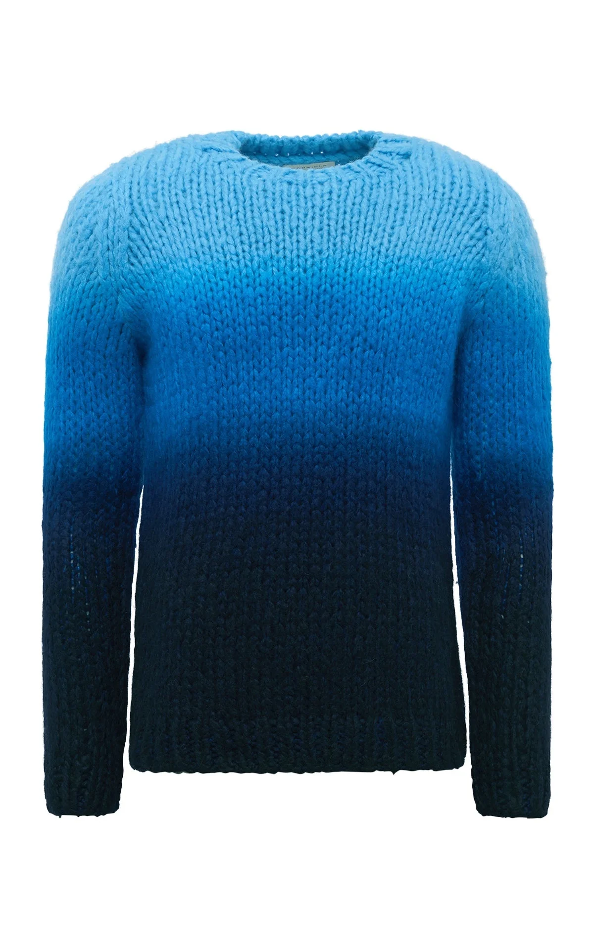 A twist on our classic Lawrence sweater, handknit in our softest cashmere in Uruguay, the Aion sweater is dip dyed by artisans to give an ombre color effect. It is designed It's designed as continuation of the Perses skirt and made to be worn together. Details: - 100% Cashmere - Crewneck - International sizing - Made in Uruguay Size and Fit: Oversized fit. Fits true to size. Model is 5'11" and wearing a size S.