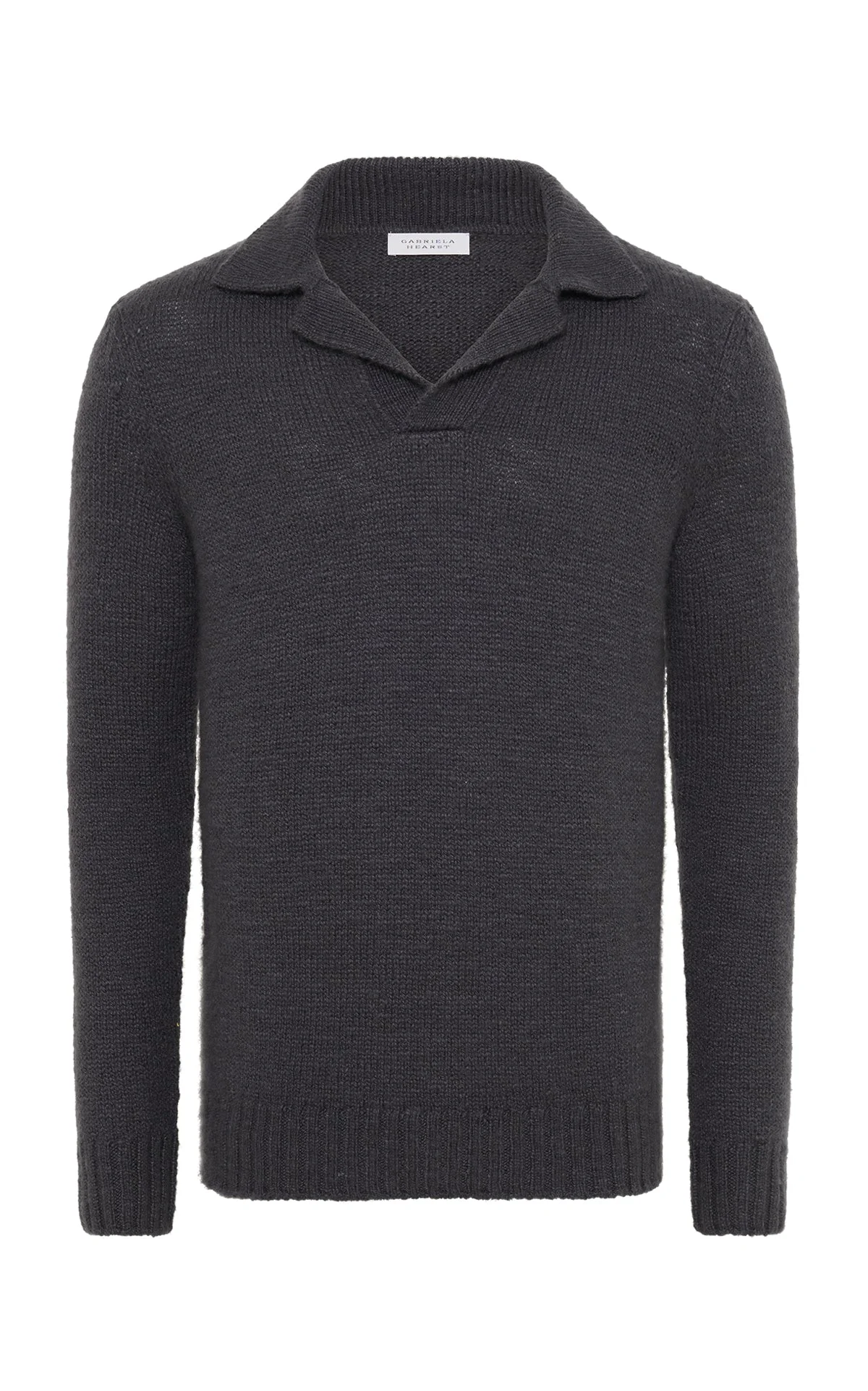 The Aled Polo is the most classic of knit polo silhouettes, sans button closure, for an effortlessly refined and handsome look. Details: - 100% Cashmere - Ribbed Cuffs - Ribbed Hem - Made in Italy