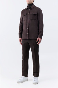 This garment is inspired in part by Leonard Norman Cohen, is a take on a military field shirt has been reworked into a minimal timeless garment. Details: - 100% Silk - Button-up - Dual pockets. - Made in Italy Size and Fit: Standard fit. Fits true to size. The model is 6'2" and wearing a size 50.