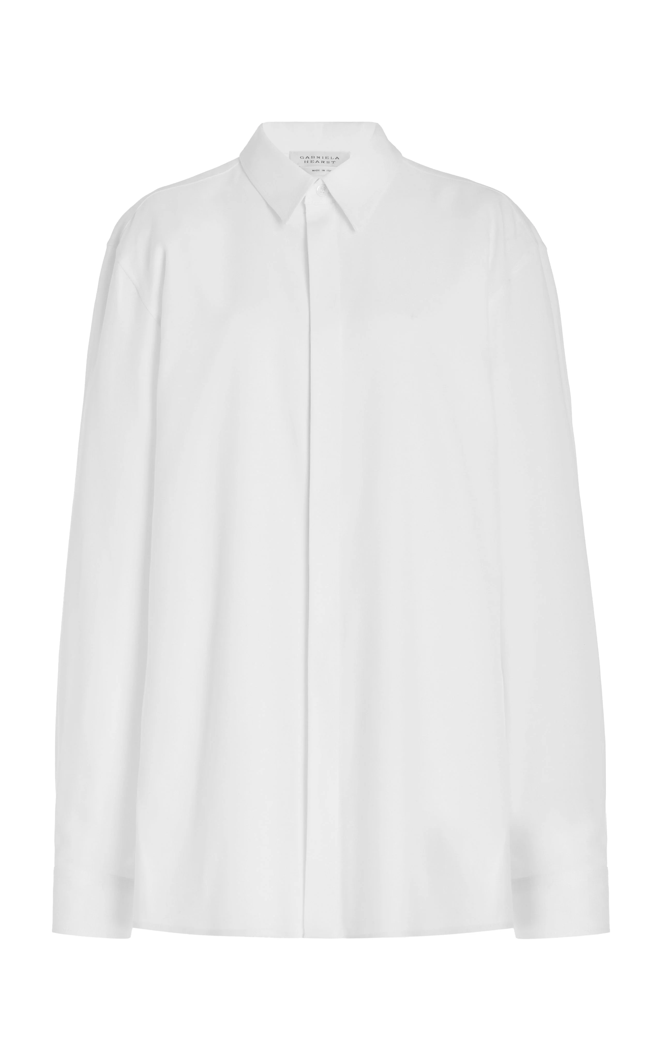 This style is defined by an impeccable, informal style. Its lapel collar is inspired by 1950s tailoring. The collar of this style is cut in three pieces, adding an informal, sophisticated flair. Details: - 100% Cotton - Button-up - Made in Italy Size and Fit: Standard fit. Fits true to size.