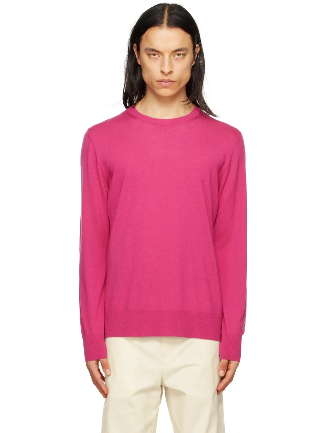 Handcrafted knit merino wool sweater. · Fully fashioned construction · Rib knit crewneck, hem and cuffs Supplier color: Fuchsia 100% merino wool. Made in Italy 232854M201007