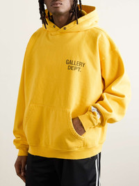 A fail-safe for casual days, Gallery Dept.'s '90's' hoodie is cut for an oversized fit from soft cotton-jersey with a plush loopback reverse. It bears the label's 'Art on display' patch applique on the sleeve and is printed with the unmistakable Sans-serif logo. Size & Fit - Intended to be oversized; we recommend sizing down if you prefer a closer fit - Mid-weight, slightly stretchy fabric - Model is shown wearing a M - Model measures: chest 38"/ 96cm Details & Care - Yellow and dark-brown loopback cotton-jersey - 100% cotton - Machine wash