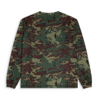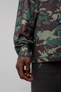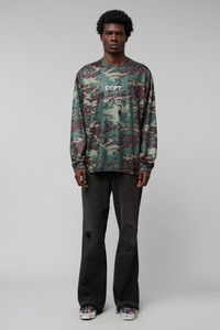Long sleeve fitness tee in a relaxed fit with breathable, lightweight fabric. All-over camo print and reflective French DEPT. logotype on the front. Model: 6" wearing size L Artistic Details - Long-sleeve active fitness tee. - Relaxed fit in a lightweight fabric. - All-over camo print. - Reflective FRENCH DEPT. logotype on the front. Material: 88% Polyester / 12% Spandex