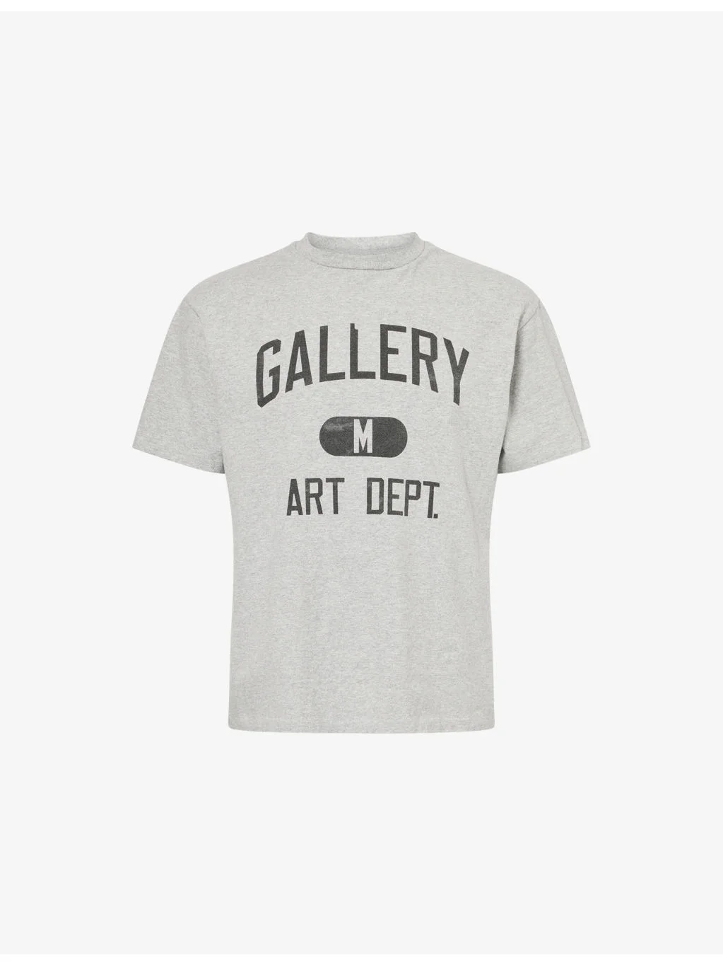 PRODUCT DETAILS - GALLERY DEPT. cotton-blend T-shirt - 90% cotton, 10% polyester - Relaxed fit, ribbed crewneck, short sleeves, brand and text print at front, all-over melange print - Dry clean only - Made in USA - Model is 6ft 2in/1.88m and wears a size medium - Lightweight, stretchy Ref: R04548868