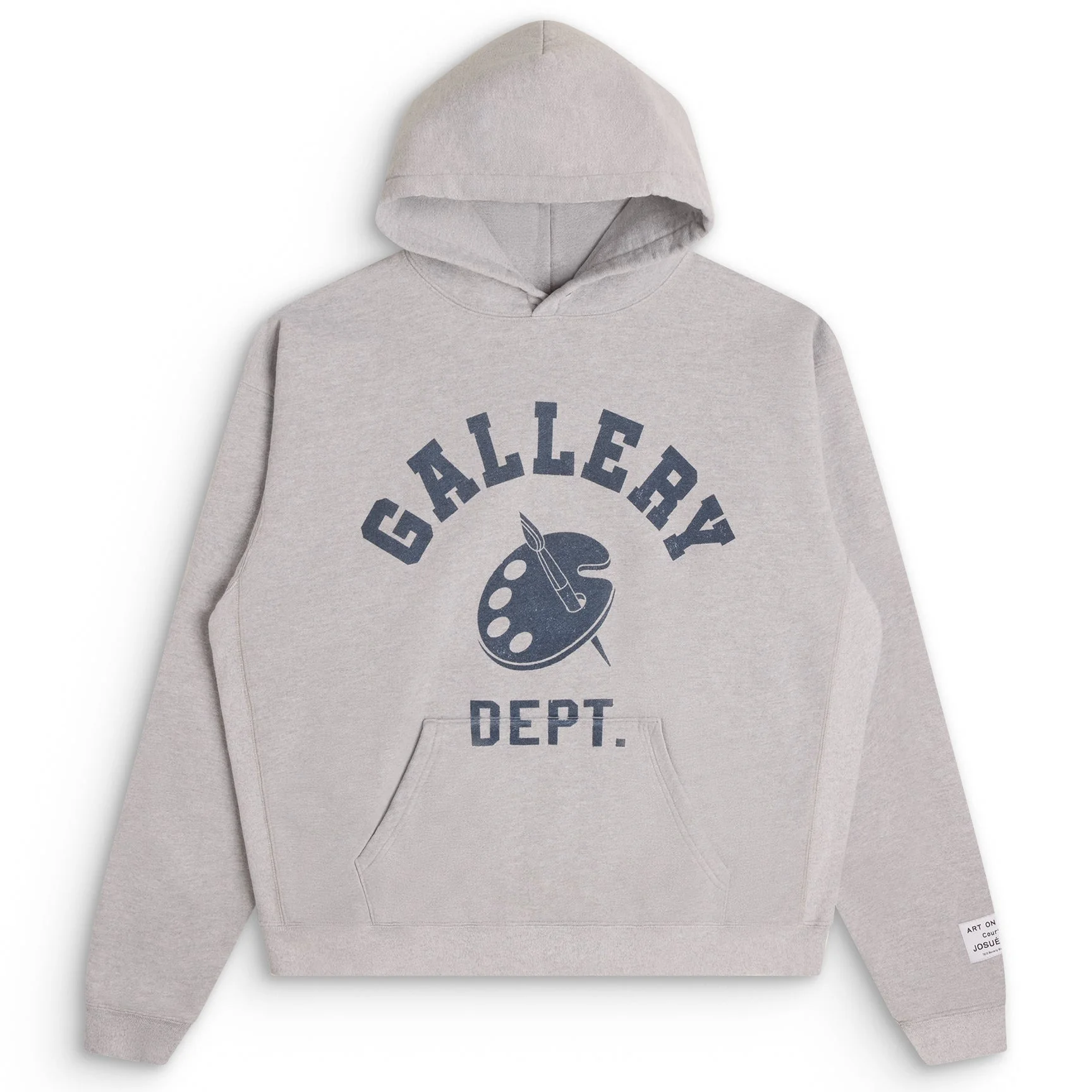 Heather grey oversized loopback cotton-jersey hoodie featuring a front artist palette graphic, GALLERY DEPT. logo, and a front pocket. Artistic Details - Oversized fit. - Loopback cotton-jersey hoodie. - Front artist palette graphic. - GALLERY DEPT. logotype. - Front pocket. Made in USA Material: 100% Cotton