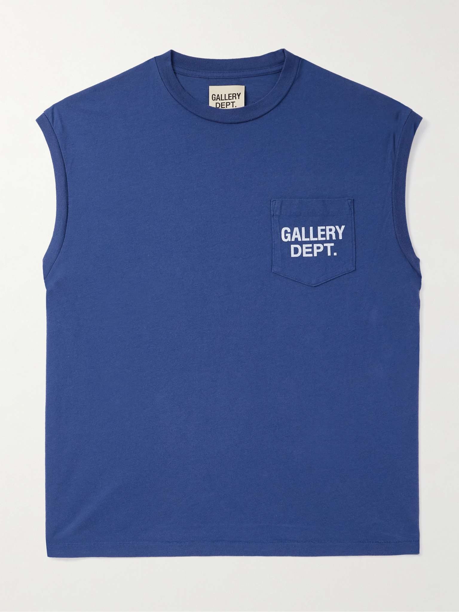 Gallery Dept.'s 'Augi' T-shirt is cut to resemble sporty muscle tees. It’s made from lightweight, subtly faded cotton-jersey and printed with a signature logo at the chest pocket. Size & Fit - Fits true to size. Take your normal size - Those with broad shoulders may wish to take the next size up - Lightweight, stretchy fabric - Model measures: chest 38"/ 96cm - S/M/L sizing Details & Care - Navy and white cotton-jersey - 100% cotton - Machine wash
