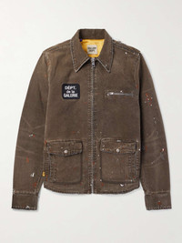 Gallery Dept. founder Josué Thomas loves vintage – "it has a character, a personality to it" he told The Journal. This 'Billy B' jacket is cut in a relaxed shape from worn-in coated-canvas that's hand-distressed at the label's LA studio and splattered with paint. It's appliqued with the logo on the chest. Size & Fit - Fits true to size, however those who are between sizes should take the smaller size - Designed for a relaxed fit - Mid-weight, non-stretchy fabric - Model is shown wearing a M - Model measures: chest 38"/ 96cm, height 6'0"/ 183cm Details & Care - Brown, red and white coated canvas - Zip fastening - 100% cotton - Dry clean