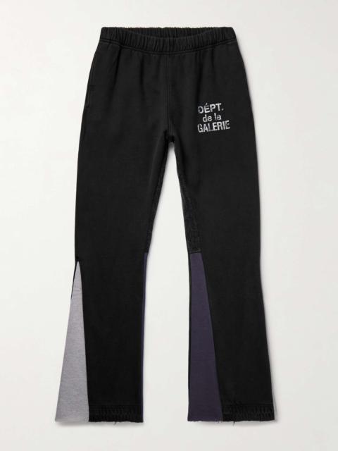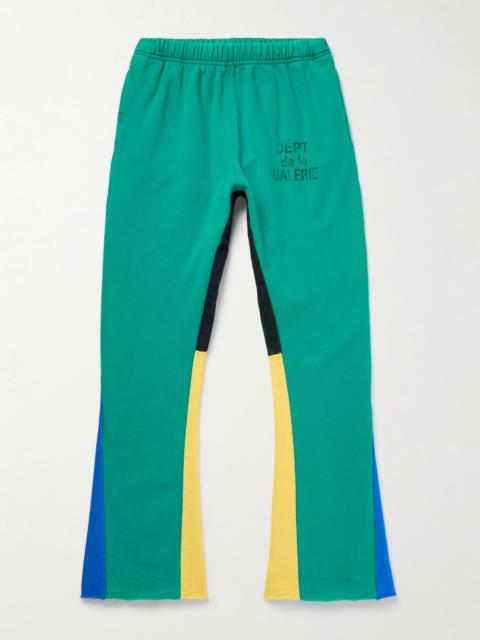 Flared Denim-Panelled Logo-Print Cotton-Jersey Sweatpants Blue