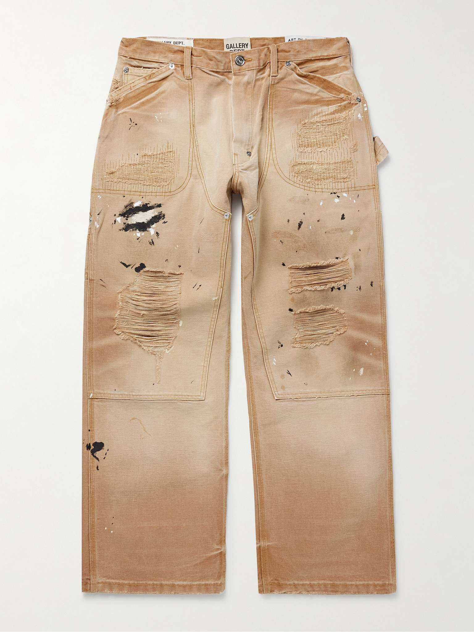 Gallery Dept.'s jeans are wearable works of art and this 'Branko' pair personifies the ethos with their distressed, DIY feel. They're cut in a straight, carpenter-inspired shape from denim with rips and paint splatters throughout. Size & Fit - Fits true to size, however those who are between sizes should take the smaller size - Relaxed-straight leg, mid-rise style - Mid-weight, non-stretchy fabric - Model is shown wearing a 30 Details & Care - Beige denim - Button and zip fastening - 100% cotton - Machine wash