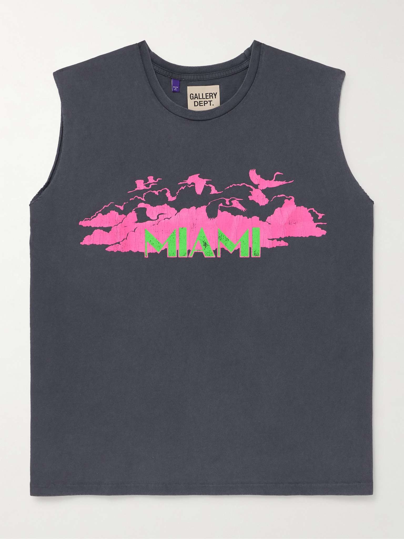 Gallery Dept.'s collections are filled with eye-catching graphics, like the 'Miami' spell-out at the front of this 'Collins' tank top. Printed with vivid shades of pink, gold and green, it's been made in Los Angeles from washed cotton-jersey and cut for a boxy fit. Note the glittered logo at the back. Size & Fit - Model wears a size larger to achieve a looser fit - Mid-weight, slightly stretchy fabric - Model is shown wearing a M - Model measures: chest 36"/ 92cm, height 6'1"/ 185cm Details & Care - Multicoloured cotton-jersey - 100% cotton - Designer colour: Ocean Wash Black